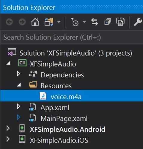 Xamarin で音声ファイルを再生するには Simple Audio Player プラグインが使えます。 ■ コード 次のコードは、ボタンをクリックすると埋め込みリソースの音声を 3.5 秒間ループ再生します。 using System.Threading.Tasks; using Xamarin.Forms; namespace X…