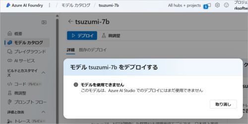 Azure のモデル カタログにいる tsuzumi がデプロイできなかった話です。 この方法ではできなかったというわけで、できる方法があると思います。が、今回はこの方法ではできなかったというところまで。 ■ デプロイできない様子 ページ上をポチポチしてではデ…