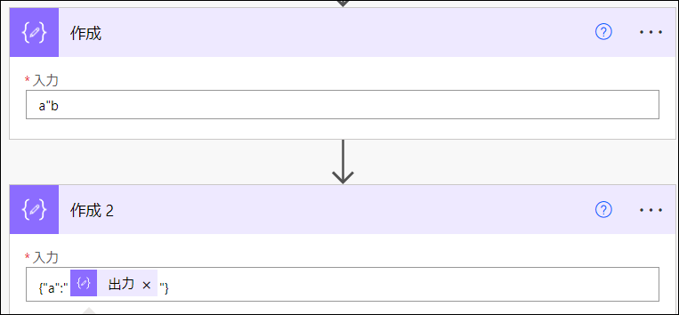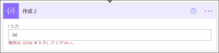 { "inputs": { "a": "@{outputs('作成')}" } }