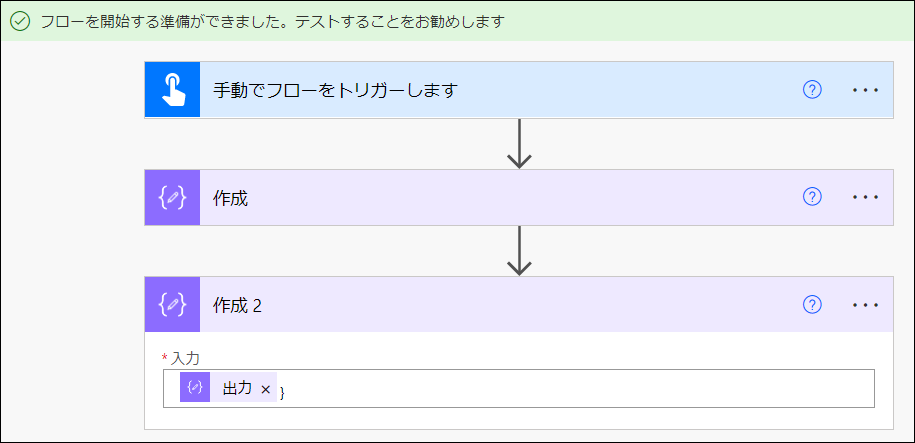 値が文字列でなく JSON になっています! なるほどフローの編集で JSON として認識されているとこういうコードになるんですね。納得。