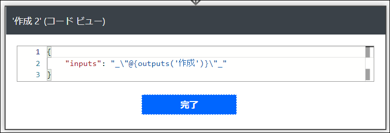 { "inputs": "_\"@{outputs('作成')}\"_" }